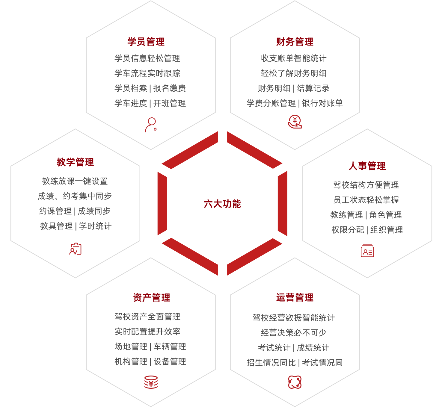 平臺(tái)通過(guò)WEB端、移動(dòng)端、設(shè)備終端的數(shù)據(jù)聯(lián)動(dòng)和學(xué)員端、教練端、駕校端的三方數(shù)據(jù)互通,真正做到一個(gè)駕校管理 平臺(tái)解決駕校所有問(wèn)題。為教學(xué)規(guī)范化、駕校品牌化提供全面 化服務(wù),幫助駕校對(duì)自身資源進(jìn)行優(yōu)化配置。