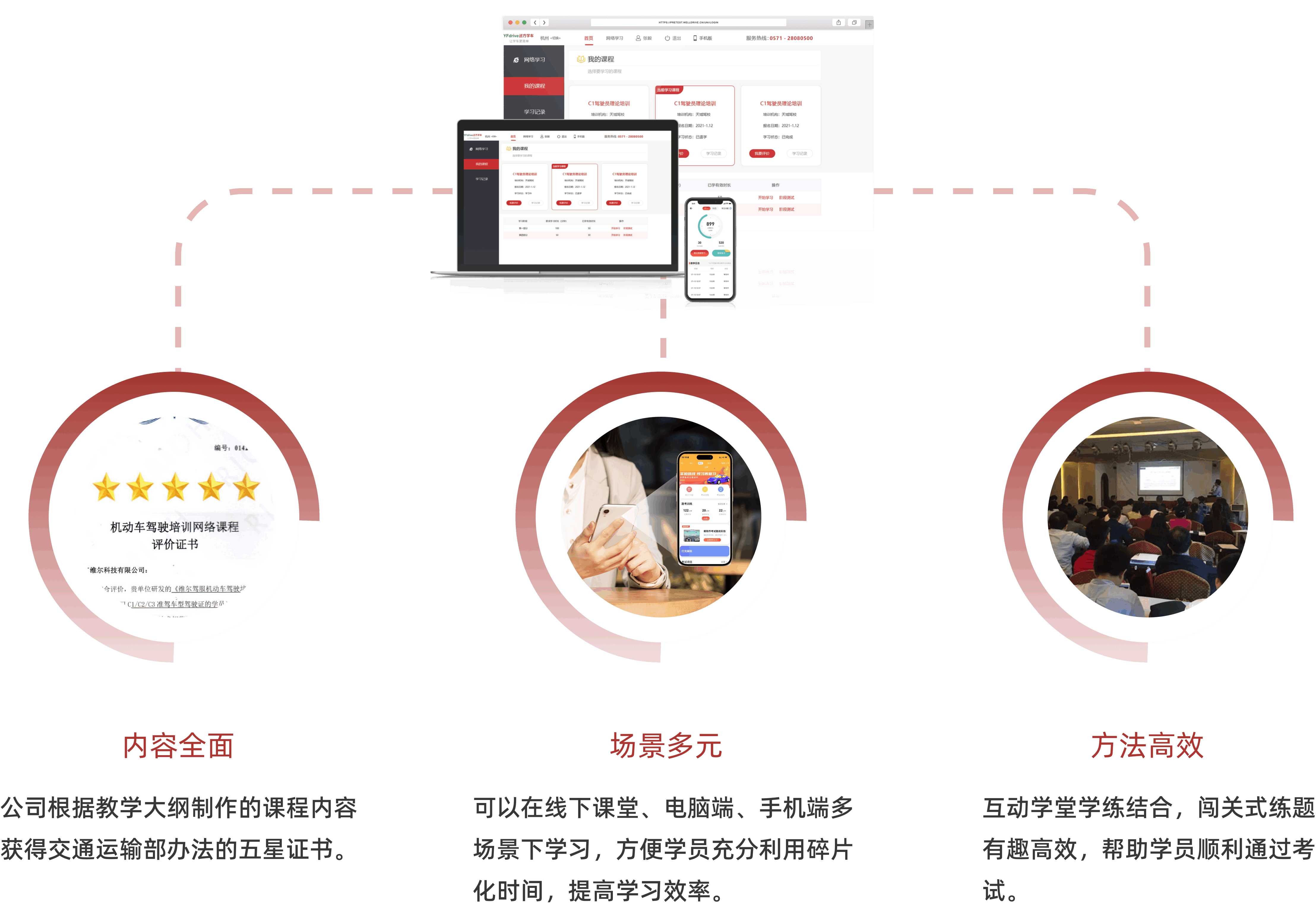 遠(yuǎn)程教育平臺(tái)以“方便學(xué)員、加強(qiáng)監(jiān)管、降低成本、落實(shí)效果”為宗旨,采用移動(dòng)互聯(lián)網(wǎng)、云計(jì)算、大數(shù)據(jù)、人臉識(shí)別等新一代信息技術(shù),提供全方位的機(jī)動(dòng)車駕駛員在線培訓(xùn)服務(wù),學(xué)員可以利用碎片化時(shí)間進(jìn)行在線理論學(xué)習(xí),所有學(xué)習(xí)時(shí)間均可計(jì)入學(xué)時(shí),方便高效。